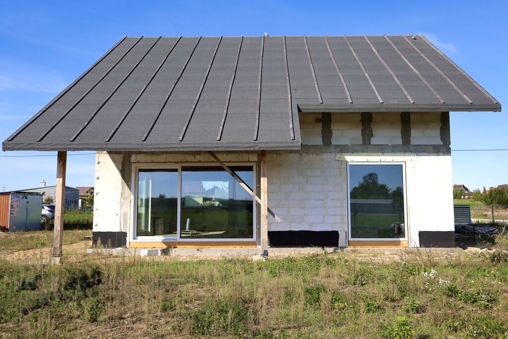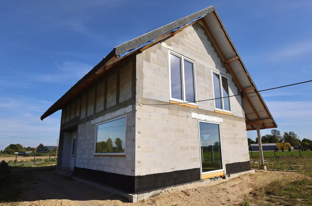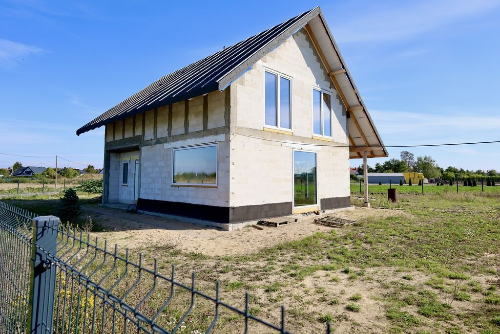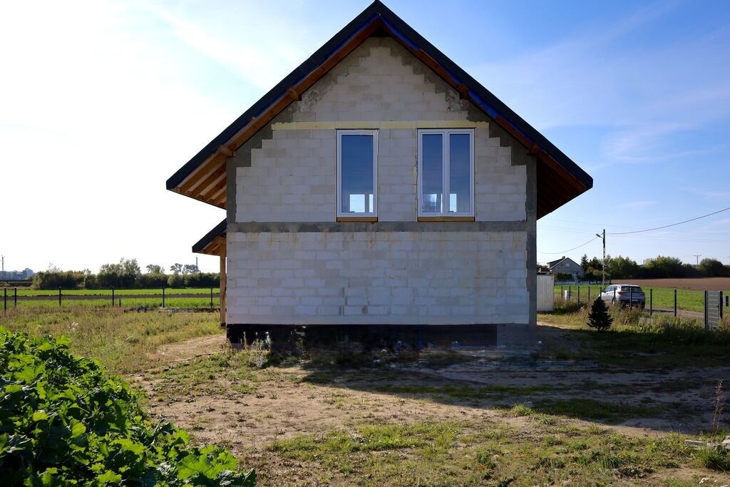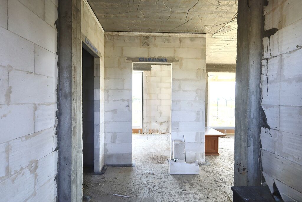 Stan domu: stan surowy zamknięty bez pokrycia dachowego.